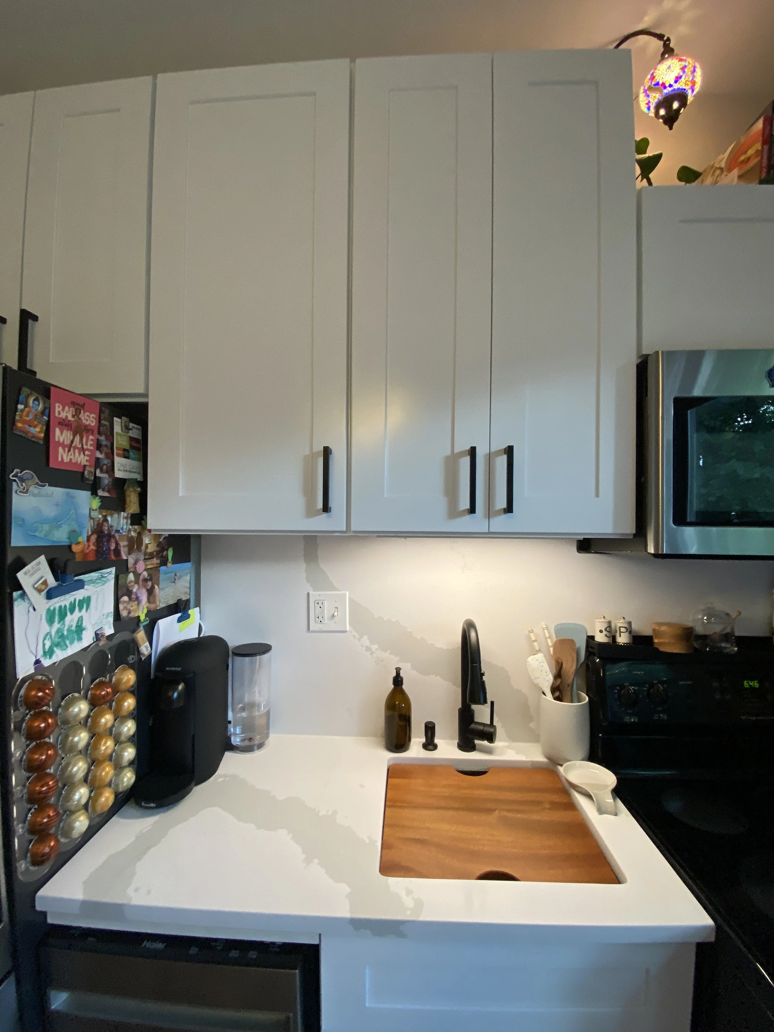 Who says you cant have the kitchen of your dreams? For only $7,000 this 1990’s outdated kitchen was gutted, updated, and thoughtfully redesigned with high end finishes and ample storage. Hello focal point!